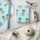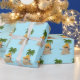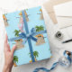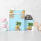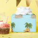 Tropiskt sand snögubbe med strandhatt och handflatan träd i sand på ljusblå bakgrund. Bakgrunden till färg kan ändras.