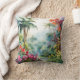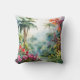Ett akvarell-landskap av en tropisk skog med färgglada blommor