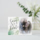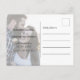 Meddela bröllop med den här moderna mallen. Den ursprungliga digitala vattenfärgen i tropiska blad och grönska i delikat grönt. Här kan du lägga till ett eget unikt foto som visas både på framsidan och baksidan av vykortet. Fotot har en mjuk, genomskinlig, vit täckmantel som en romantisk ge känner av i sin design.Allt du behöver göra är att lägga till dina personuppgifter och du har skapat ditt eget unika bröllop-meddelande.