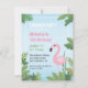 Denna födelsedagsfest inbjudan har ett öga att fånga och moderiktig rosa stå för flamingo som är högväxt bland de tropiska löven. Underbar för en themed eller tropisk themed födelsedagsfest för sommar! Personifiera med ditt party specificerar lätt i de förutsatt att textmallarna.