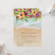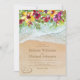 Gör dina drömmar om en stranddestination bröllop till verklighet denna sommar med denna eleganta tropiskt inspirerade inbjudan! Den här moderna bröllopsinbjudningsmallen har en sandig strand, havsvågor, livfulla akvarellblommor och löv, strängar av lampor och ett hjärta format i sanden med era initialer och är lätt att anpassa för er speciella dag. Dessutom ger den exotiska färgpaletten och designen en vacker tropisk känsla till er speciella tillställning. Skapa ett underbart sommarbröllop som era gäster aldrig kommer att glömma med denna lättanpassade inbjudan.
