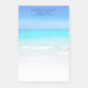 Stora storleka post-it-anteckningar med en sann tropisk strand. Ett fantastiskt turkoshavet i avstånd och kristallklart vatten som bär på en sandstrand. En ljus blå himmel i bakgrunden. Anpassa med information om bröllop - namn, plats och datum.