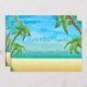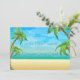 En tropisk design med en illustration av en strandscen med palmer och kokosnötter, som sätter scenen för ett romantiskt tropiskt strandbröllop. Designen finns på båda sidor av inbjudan. Framsidan kan anpassas för att inkludera namnen på bruden och brudgummen. Baksidan kan anpassas helt för detaljerna på just din speciella tillställning. Denna inbjudan koordinerar med Tropical Beach and Palm Trees Wedding Collection. Om du behöver hjälp med anpassningen för din speciella dag eller vill ha denna design på produkter som för närvarande inte erbjuds med denna design, vänligen kontakta oss via vår WeddingBazaar-butik.