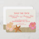 Strandbröllop spara datum med en vintage flärd och det rustika utseendet av juteväv allt accentuerat med hibiskus, sanddollar och sjöstjärnor, anpassa text och teckensnitt för att passa din stil.