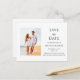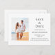 Tropiskt strandbröllop Spara datumet-annonseringsbrevkort med en elegant typografi och fotograferingsdesign. Med anpassningsbar bokstavsstil kan du lägga till dina namn och bröllopsdetaljer. Du kan också lägga till ditt eget foto för att ge det en personlig touch. Perfekt för planering av din destination bröllop.