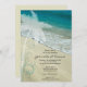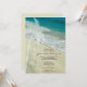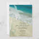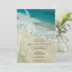 Bjud in gästerna till din avslappnade men ändå klassiska ö-destination bröllopsceremoni med den naturliga Tropiska strandbröllopsinbjudan. Denna anpassade bröllopsinbjudan har ett naturfoto av det turkosa, tealgröna eller akblå havet på en vit sandstrand med ett palmer och teal virvlande design som pryder hörnet.