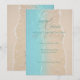 Kristallklart blått vatten möter sanden i denna enkla och eleganta tropiska strandbröllopsinbjudan. Texten kan anpassas med hjälp av den medföljande mallen eller ändras med hjälp av designverktyget. Anpassa denna design för ditt minimalistiska strandbröllop.