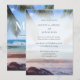 Få dina gäster att förbereda sig för det fantastiska tropiska strandbröllopet (eller strandtemat bröllop) med denna bröllopsinbjudan.