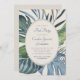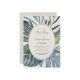 Bjud in dina gäster till paradiset för en dag med denna eleganta design med tropiska palmlövar. Med en spray av olika tropiska blad i lugna blå och gröna färger och ett stiliserat rattansmuster på baksidan, förkroppsligar denna design en luftig dag under palmerna. Perfekt för din avslappnade strandfest eller destinationfirande i tropikerna. Handla samlingen idag för matchande brevpapper, och ge dig av till den perfekta dagen!