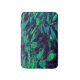 abstrakten mönster på denna Bath Mat skapades från ett originalfoto av royalet poinciana träd. Några av de träd tropiska löven är i solljus, i ljusa gröntar av gult. Andra är i skugga, i skuggor av blått från akvarium till djuphavsbotten, med högdagrar för lila. Bakgrunden är nästan svart. Formgivningen har en övergripande struktur av struktur.