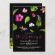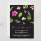 Tropisk svart blomstergrönska strandbröllop inbjudningar