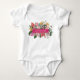 Tropisk baby body. Klä din baby i stil med vår personliga, ett-delad body med barnets namn. Överflödande med eleganta moderna detaljer och livfulla färger, denna body visar upp frodiga gröna palm- och monstera blad, livfulla magenta och fuchsia orkidéer och ömtåliga rosa hibiskusblommor. Med denna vackert designade och personliga babyklänning kan du säkerställa att varje detalj på din baby shower är perfekt koordinerad.