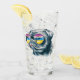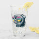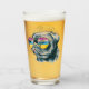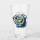 Denna design presenterar en mops som tittar till och med solglasögon på en tropisk plats.
