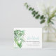 Upptäck det perfekta komplementet till din tropiska grönskande bröllopstema med detta exklusiva detaljeringskort för gäster vid strandbröllop. Vackert prydd med en sidram av ömt handmålad vattenfärg-bambu och blad i lugna gröna nyanser, visar den elegant dina uppgifter om bröllopswebbplatsen på ett bekvämt format kort som mäter 3,5 x 2 tum. Anpassa det enkelt med din egen text via våra användarvänliga fält, och utforska funktionen Anpassa för att finjustera typsnitt, storlekar och mellanrum efter eget tycke. För en harmonisk brölloppsserie, utforska hela utbudet av matchande mönster skapade av den begåvade Victoria (Rigali) Grigaliunas på DoTellABelle Invites på Zazzle.