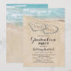 Strandexamensfestinbjudningar med sommarlig tropisk ö-miljö, en gammal sandstrand med två hjärtan i strandlinjen, examensår och en modern examensfestmall.