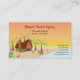 Denna visitkort presenterar en tropisk bild av en tikikoja som omges av palmträd på stranden. Perfekt för någon som har något att göra med tropikernan. Underbar för en resabyrå!