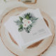 Fira bruden med dessa moderna och eleganta bröllopsduschservetter med en vit och grön tropisk blomsterbukett på en ljus stenskär båge.