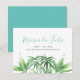 Meddela er förlovning med dessa tropiska "Save the Date"-kort på spanska, perfekta för bröllopsmaterial med en kustnära touch! Med en trendig handritad typsnittsstil fångar dessa inbjudningar essensen av ett destinationbröllop med en kopia av mina ursprungliga akvarellpalmlövar. Anpassa med era namn, bröllopsdatum och plats för en enkel, minimalistisk look som är idealisk för tropiska brölloppsidéer. Perfekta för strandbröllop på platser som Mexiko, Cabo San Lucas, Riviera Maya eller Florida Keys, varje kort har en turkos blå baksida. Upptäck fler tropiska mönster och bröllopsmaterial av Victoria Grigaliunas på DoTellABelle på Zazzle.