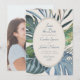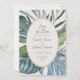 Inbjudan till era gäster för en dag med denna elegant tropiska löv. Med en spray av tropisk löv i serenblåsor och gröntar och en stiliserad rotting mönster på baksidan, förkroppsligar denna utformning en skön dag under handflatan träd. Perfekt för din avslappnad strandaffär eller destinationen firande i tropikarna. Köp samlingen i dag för att matcha ett dokument, och gå till perfekten!