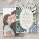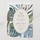 Inbjudan till era gäster för en dag med denna elegant tropiska löv. Med en spray av tropisk löv i serenblåsor och gröntar och en stiliserad rotting mönster på baksidan, förkroppsligar denna utformning en skön dag under handflatan träd. Perfekt för din avslappnad strandaffär eller destinationen firande i tropikarna. Köp samlingen i dag för att matcha ett dokument, och gå till perfekten!