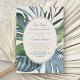 Inbjudan till era gäster för en dag med denna elegant tropiska löv. Med en spray av tropisk löv i serenblåsor och gröntar och en stiliserad rotting mönster på baksidan, förkroppsligar denna utformning en skön dag under handflatan träd. Perfekt för din avslappnad strandaffär eller dressy brunch. Köp samlingen i dag för att matcha ett dokument, och gå till perfekten!