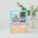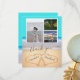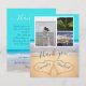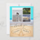 Tack för ditt kort. Med 3 fotokollage, 2 hjärtan i sanden, tealblått bakgrund