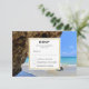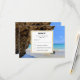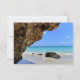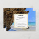 OSA kort med ett scenbildfotografi. Vackert blått hav med sandstrand. Ett stort brunt sten ger lite skugga från det ljusa blå himmel.