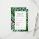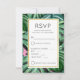 Ett bröllopssvar med en målad bakgrund med målade tropiska blad i grönt. En vit ram lagd överst med en falsk guldfoliekan.
