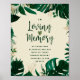 Tropisk Lövverk Trendig Grönska och Blad Kant Personlig Bröllop In Memoriam Minnestavla. Perfekt för din mottagning eller festdekoration, för att minnas de nära och kära som gått bort. I en djärv färgpalett med rika gröna nyanser, smaragd och guld folie-utseende. Denna design är perfekt för ett strand-, resmål- eller sommarbröllop. Med känslor av en tropisk paradis, kommer denna livfulla palmblad-design att komplettera din strand- eller tropiska bröllopsplats. I en mörkgrön, turkos, smaragd, grönska och guld färgskala - Bröllopsmottagning In Memoriam Minnestavla.