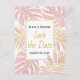 Tropiska blad moderna rosa bröllop Spara datum Meddelande Vykort
