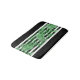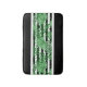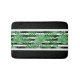 Fin contemporary, medel, mörk, mint- och kalkgrön och vit tropisk handflatan träd-front på en svart och vit färgad rand mönster. Ornate, whimsical and funky design finns på en mängd olika roligtar, klasser och modeformade badrumsdekorationer och strandskärmsmaterial.