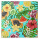 Tropiska blandningar av frukt, blommor och löv på kakelplatta