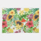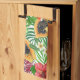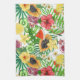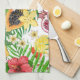Tropiska blandningar av frukt, blommor och löv på kökshandduk