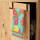 Tropiska Blommigtar Teal, Orange, Gult med Trim Kökshandduk