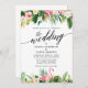 Modern Kalligrafi-skript, Watercolor Tropical Blommigt Greenery Wedding Invation med Rosa Flamingo.