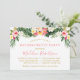 Modern Elegant Watercolor Tropical Blommigt Bachelorette Party Invation Card omfattar rosa, vit, gula blommor och botaniska grönsaksprodukter från handflatan löv. Trendig Calligraphy Script. Guld Rosa Flamingo Back.