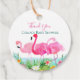Söt vattenfärgsflamingor med tropiska blommor och löv, personlig är för taggar. Märkre, två linjer för anpassningsbar. Teckensnittsformat och färg kan anpassas. Även baksidan av märkrn, som visas i ljusteal, kan anpassas.