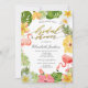 Tropiska blommor med handflatan löv och flamingos. Den här inbjudan är lätt att anpassa för evenemanget genom att helt enkelt lägga till information.