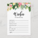 Skriv ner dina önskningar för nygifta med detta tropiska brölloppshälsningskort. Det har vattenfärgillustrationer av tropiska blommor som hibiskus, plumeria och orkidéer samt tropisk lövverk som palmlöv och bananblad. Detta blomsterkranshälsningskort är perfekt för tropiska och sommarbröllop.