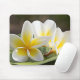 Musmattan visas med ett fototryck av vackra tropiska plumeriablommor. Anpassa det här objektet eller köp som det är. Lagrar-bild
