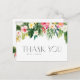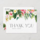 Skicka ett tack med det här anpassadet till bröllop tack för vykortet. Den har en vattenfärgsgarland av plumeria, hibiscus, handflatan löv och andra tropiska grönområden och blommor. Anpassa genom att lägga till information. Det här tropiska tack du har för perfekt för sommartid bröllop, babyduschar, studenten, födelsedagar och så vidare. Matchande objekt är tillgängliga.
