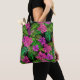 Tropiska blommor och växter på svart tygkasse
