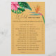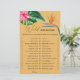 Denna färgstarka tropiska blommigt och den tropiska färg-bakgrunden inbjudningskort för möhippan. Konstruktionen har en vattenfärgad elegant buquet av klassisk strandvattenfärg, grönenergi och blommor, inklusive rosa hibiscus, orange och blåa fåglar av paradiset, grönt grey och mörk grönt handflatan löv.