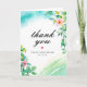 Rosa korallblommor kapas i tropiska löv av klargrönt för att skapa en contemporary botaniskt ram på detta bröllop tackkort. Blått och grönt vattenfärg tvättar i två hörn som får en öppen och mjölkande kvalitet. Tack för att du skriver in elegant calligraphy, medan datumet namn och bröllop står i en klassisk serif-text. Ett hjärta placeras i textens centrum. Det här tackkortet från bröllop är en del av den tropiska botaniska samlingen. Den innehåller DIY-mallar som du kan använda för att skapa chic bröllop-mall. Du bör se en länk till den på den här sidan. Kontakta mig om du inte ser länken eller behöver hjälp med ett objekt.