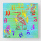 Tropiska fåglar på flerskuggad bakgrund. Uppdatera hemmet, stugan, utomhuståget med lite sommartid. Tropiska fåglar, flerfärgade bakgrundsdroppar och klocknummer för färgad av funky.