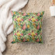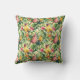Färgrik tropisk heminredning kastkudde med rosa och gula fåglar, hibiskusblommor och fjärilar.