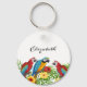 Tropiska fåglar, papegojor, blåröda handflatan löv nyckelring