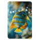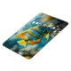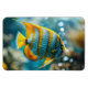 Fototryckning visas på en flexibel magnet med en vacker tropisk fisk. Foto är AI-genererat. Licensierad bild