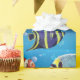 Tropiska fisksimmar, det är dags för party under havet. Busy och kaotisk undervattensscen av svart och vit stripe tropisk fisk blandad med guldfisk. Upplev dina sovande snorkelminnen med ett levande undervattensfoto av ytligt vatten av tropiska blå discus, snigel och bläckfisk mot en bakgrund av grönt korall.
