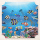 Tropiska fisksimmar, det är dags för party under havet. Busy och kaotisk undervattensscen av svart och vit stripe tropisk fisk blandad med guldfisk. Upplev dina sovande snorkelminnen med ett levande undervattensfoto av ytligt vatten av tropiska blå discus, snigel och bläckfisk mot en bakgrund av grönt korall.